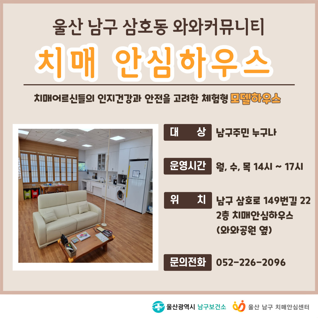 2024년 3월 26일 치매안심하우스 안내 Prev이전 다음Next Leave a comment 댓글 남기기 답글 남기기 응답 취소이메일 주소는 공개되지 않습니다. 필수 필드는 *로 표시됩니다 다음 번 댓글 작성을 위해 이 브라우저에 이름, 이메일, 그리고 웹사이트를 저장합니다. Δ Related Posts 관련 글 2024년 12월 2024년 12월 정기분 자동차세 납부 안내 2024년 11월 29일 13개 댓글 2024년 12월 12월 2024년 11월 27일 27개 댓글 2024년 12월 겨울에도 남구의 밤은 더욱 빛난다. 2024년 11월 27일 3개 댓글 2024년 12월 12월 장생포문화창고엔 ‘감동과 재미’가 있다. 2024년 11월 26일 408개 댓글
